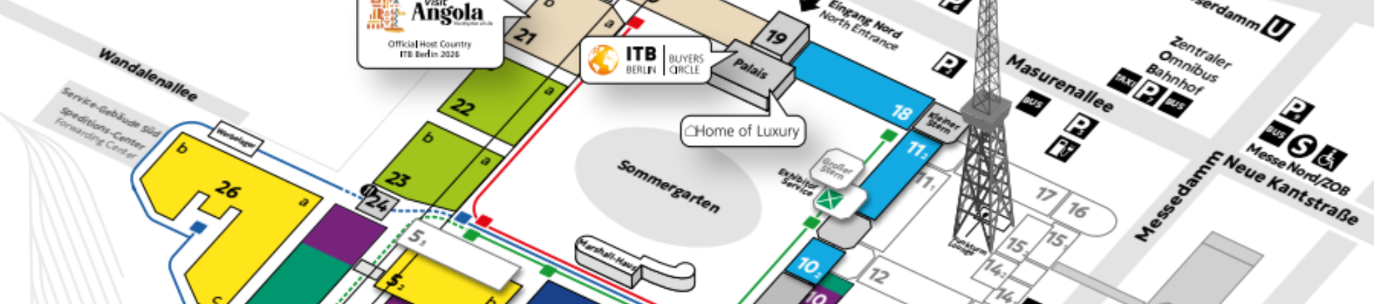 | Der interaktive Hallenplan ist ab sofort online und unterstützt Sie dabei, Ihren Messebesuch optimal vorzubereiten. Entdecken Sie alle Hallen, Ausstellungsflächen und Stände, Bühnen, Cateringbereiche und viele weitere Highlights – übersichtlich und jederzeit im ITB Navigator abrufbar. Planen Sie Ihre persönlichen Wege schon jetzt und starten Sie bestens vorbereitet in die ITB Berlin. | |