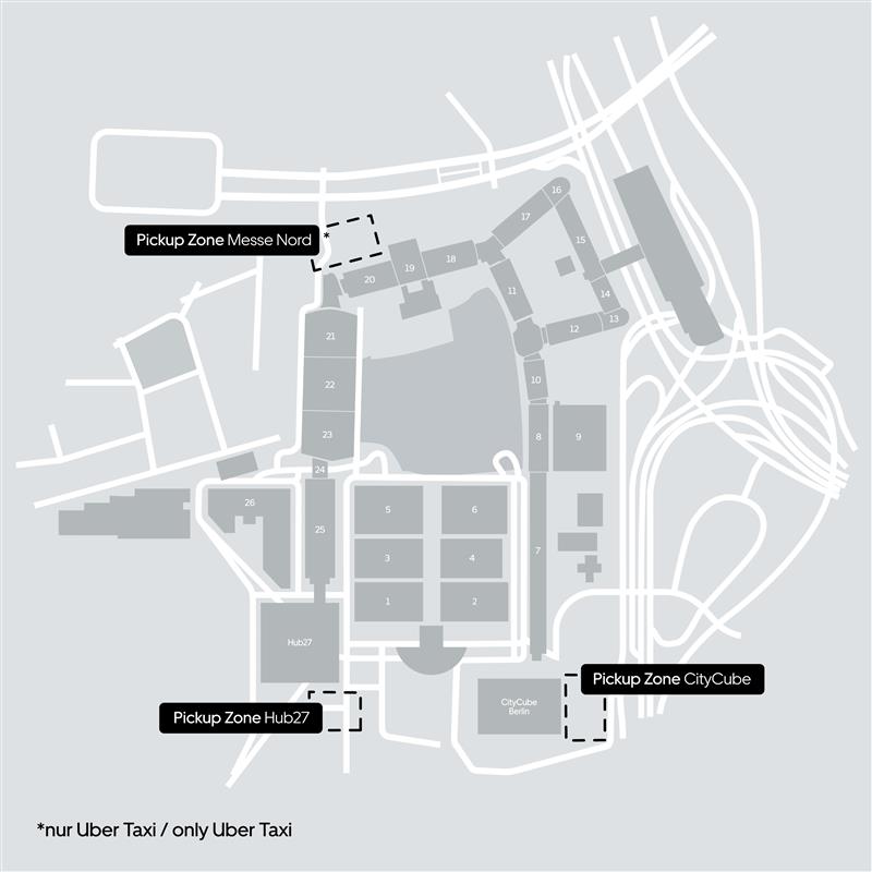 | ÖPNV-Ticket: Ergänzen Sie jetzt bequem ein ÖPNV Ticket: Öffnen Sie Ihre Ticketbestätigungs-Mail, klicken Sie auf „Bestellung anzeigen“, wechseln Sie in den ITB Berlin Ticketshop und fügen Sie unter „Bestellung umbuchen“ die passende Fahrkarte hinzu. Uber Abhol- und Ausstiegszonen: CityCube Berlin, hub27, Eingang Nord (nur Uber-Taxis) So funktioniert’s: Öffnen Sie die Uber-App, buchen Sie Ihre Fahrt und lassen Sie sich an einer dieser Zonen abholen oder absetzen. Übersicht der Abhol- und Ausstiegszonen. (JPG, 48 kB) Auto Adresse: Messegelände Berlin ExpoCenter City: Messedamm 22, 14055 Berlin PKW Parkplätze: • Öffentlche Parkplätze: P1, P2, P4, P5, P6, P9, P11 • Messe Berlin Parkplatz: P18, ICC Parkhaus stehen vom 24. Februar - 5. März für 20 EUR/Tag zur Verfügung • Parkscheine: nur gültig während der Messelaufzeit, nicht jedoch während des Auf- oder Abbaus, über den BECO Webshop bestellbar Eine Übersicht aller Parkplätze finden Sie im Geländeplan und auf der offiziellen Seite der Messe Berlin. Flugzeug Planen Sie Ihre Anreise vom Flughafen Berlin Brandenbrug mit unserem Routenplaner. Uns ist bewusst, dass die aktuellen Entwicklungen im Nahen Osten in einigen Fällen Auswirkungen auf Reiseplanungen haben können. Daher empfehlen wir Ihnen freundlich, Ihre Flugverbindungen und Reisepläne direkt mit Ihrer Fluggesellschaft oder Ihrem Reiseanbieter zu überprüfen, um sicherzustellen, dass alle Arrangements weiterhin bestätigt und auf dem neuesten Stand sind. | |