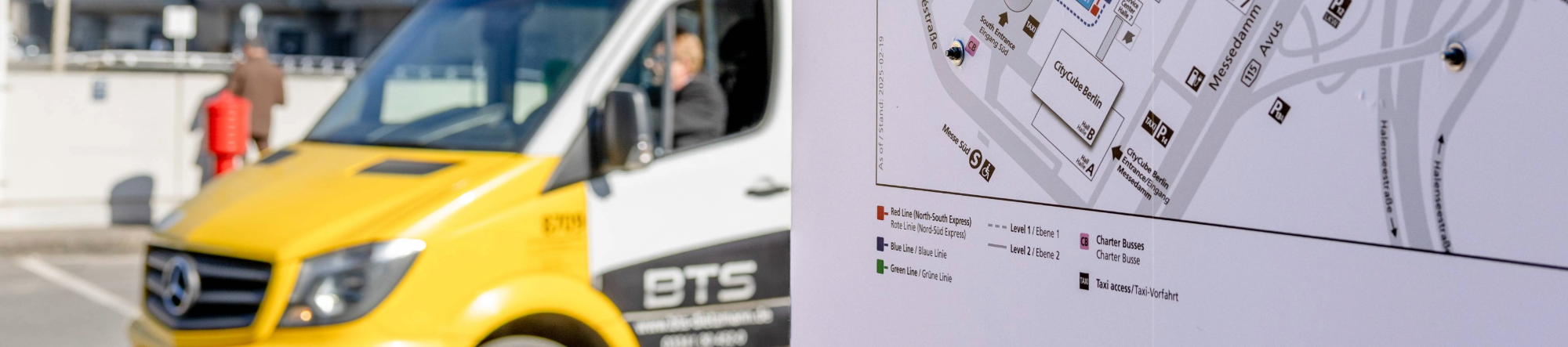 | | Taxi Tel.: +49-30-030 202020 Haltepunkte: Eingang Nord & Süd , CityCube Berlin, Halle 9 |
